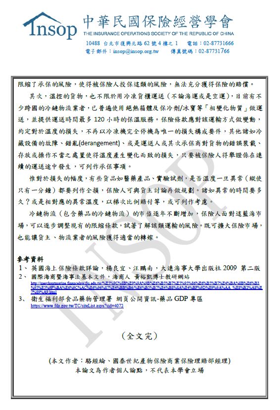 冷鏈物流在貨物運輸保險條款適用上的討論(下)